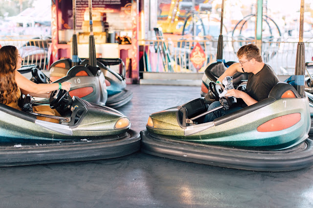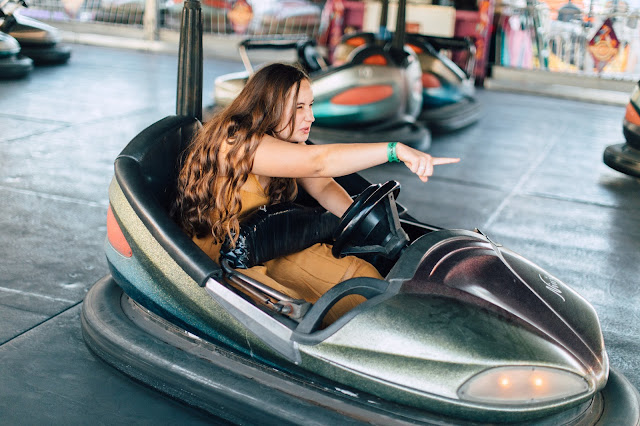 Then, we went on the bumper cars. My safety was given back to me. We were the only ones on this ride too at the time which made it super fun and competitive!