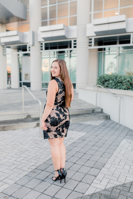 This next look features a beautiful dress with the most intricate design. I picked this dress for this series because while the fit shows off your figure, the front also keeps you conservative with the cami like lining in the chest area. You can lean forward all night without worrying about having an accidental slip!